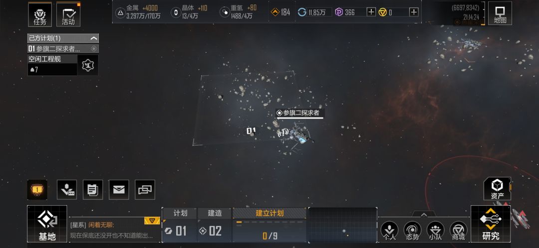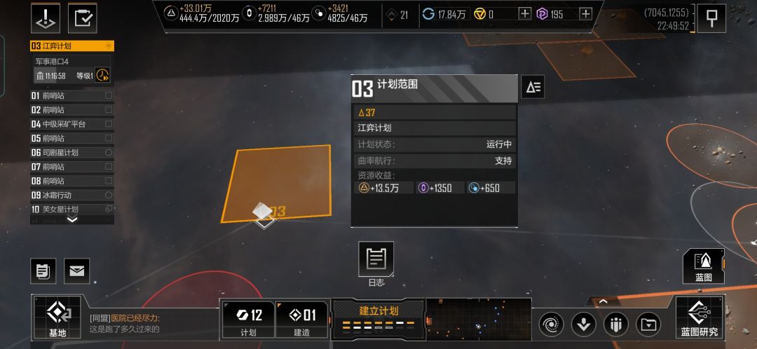 其实大多玩家玩久了都会知道,所以大佬们看个乐呵就行。 先分享下我最近玩的新服(只要我不开新服那就是新服)资源产出图片,可以点击计划或者平台查看资源。 中级采矿平台和高级采矿平台是支持同一个资源矿最多两支采矿编队同时开采的。 接下来我们进入正题【工程舰的加点】 1.X8-小型工程舰 X8型,我推荐优先点一个开采速度然后点一个曲率速度以此加快综合效率,然后依次给开采速度、仓储、曲率加点。 2.X10-