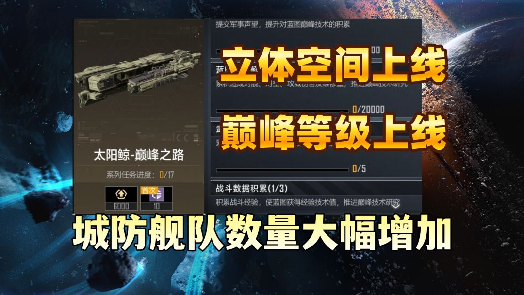 立体空间上线!巅峰等级上线!城防舰队数量大幅增加