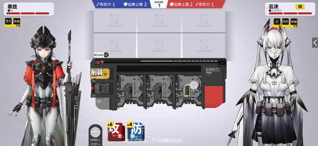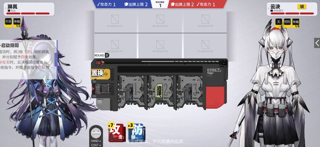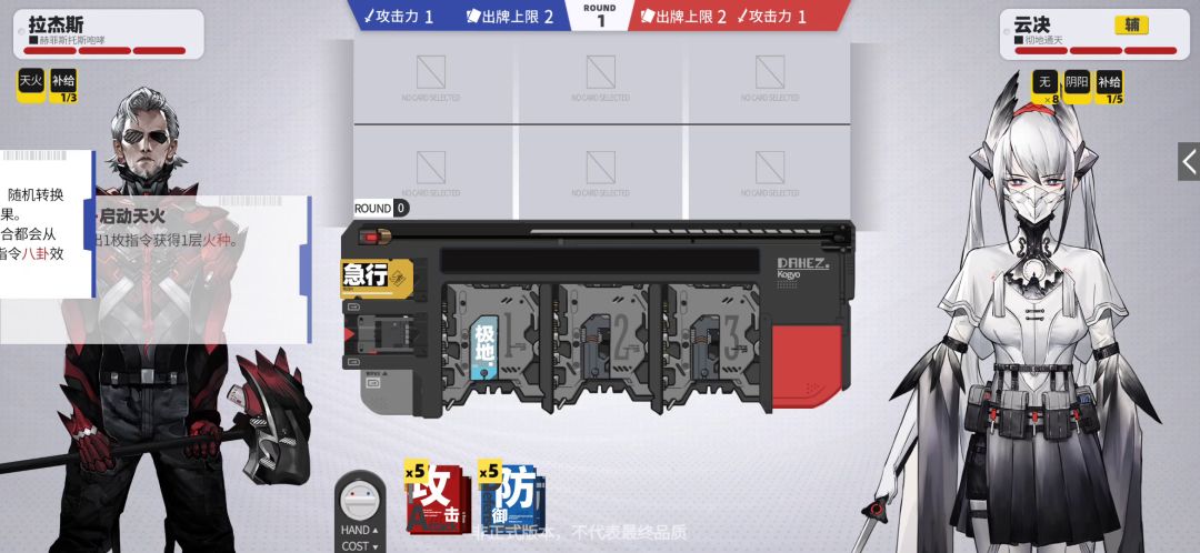 作为云玩家,受托于云管理,为这款暂时的云游戏写一篇云攻略,供诸位参考、交流。 为了节省篇幅,这里我默认各位都已经看过了老k发布的“保姆级”基础机制介绍视频及霍星的技能介绍,并对技能有了基础的认识,在此基础上做解说。 霍星手牌中的“无”要想被移除,而不是丢入消耗区,在于其攻击判定成功,既命中了敌人,而不是被“防”所格挡,也不是“撞刀”被抵消。 霍星的前两回合,在出牌选择上,应该说相对固定,就是出四把