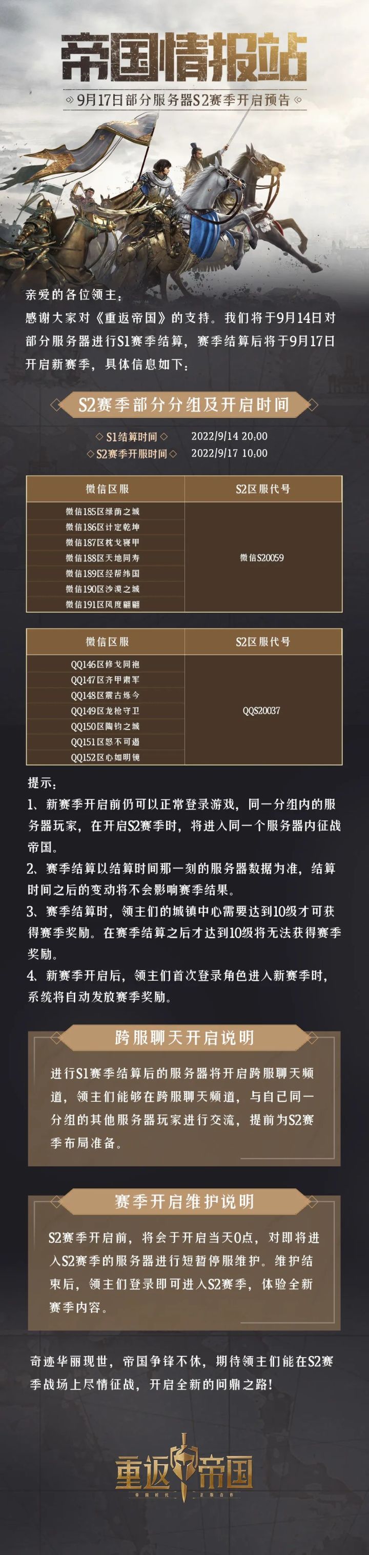 9月17日部分服务器S2赛季开启预告