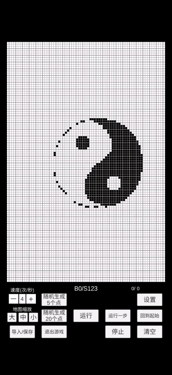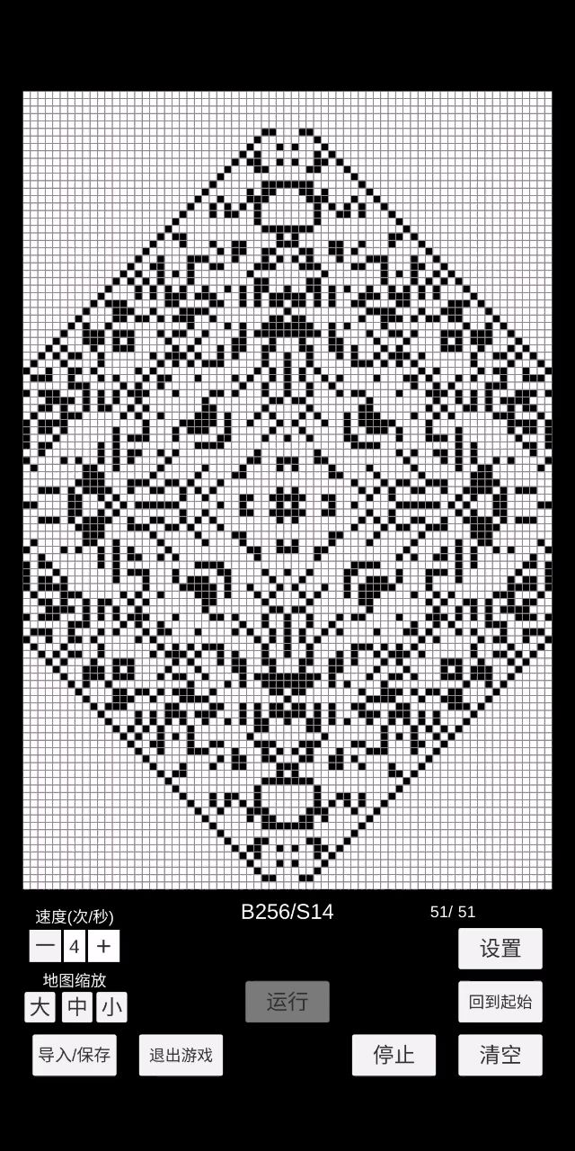 B1234567/S08 首先随首先随便乱画个图案,然后直接运行,就可以看到一堆描边出来 (如果图案太大,图案会逐渐缩水) #康威生命游戏