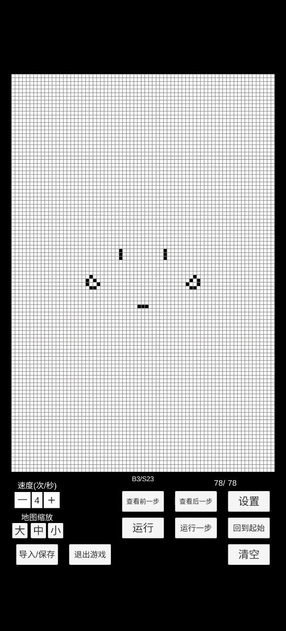 B1234567/S08 首先随首先随便乱画个图案,然后直接运行,就可以看到一堆描边出来 (如果图案太大,图案会逐渐缩水) #康威生命游戏