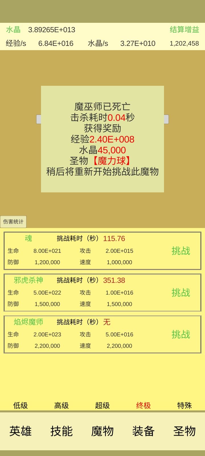 血魔首通:100暴走,1血燃, 输出除了灭杀淬毒全点, 三圣100,迷踪10, 装备不点护甲4(划重点), 7000圣躯, 8w力量,耐力0(划重点), 极速1000 水晶1200-1300兆 圣物:马蹄28w,前两页和咒术上限最好满(虽然我也没满) 40s后开始有伤害(防压到0,人物攻击>e+14) 同时40s后生存要赌,55-75s能打过, 也要赌输出量,运气好需要抗的时间就少