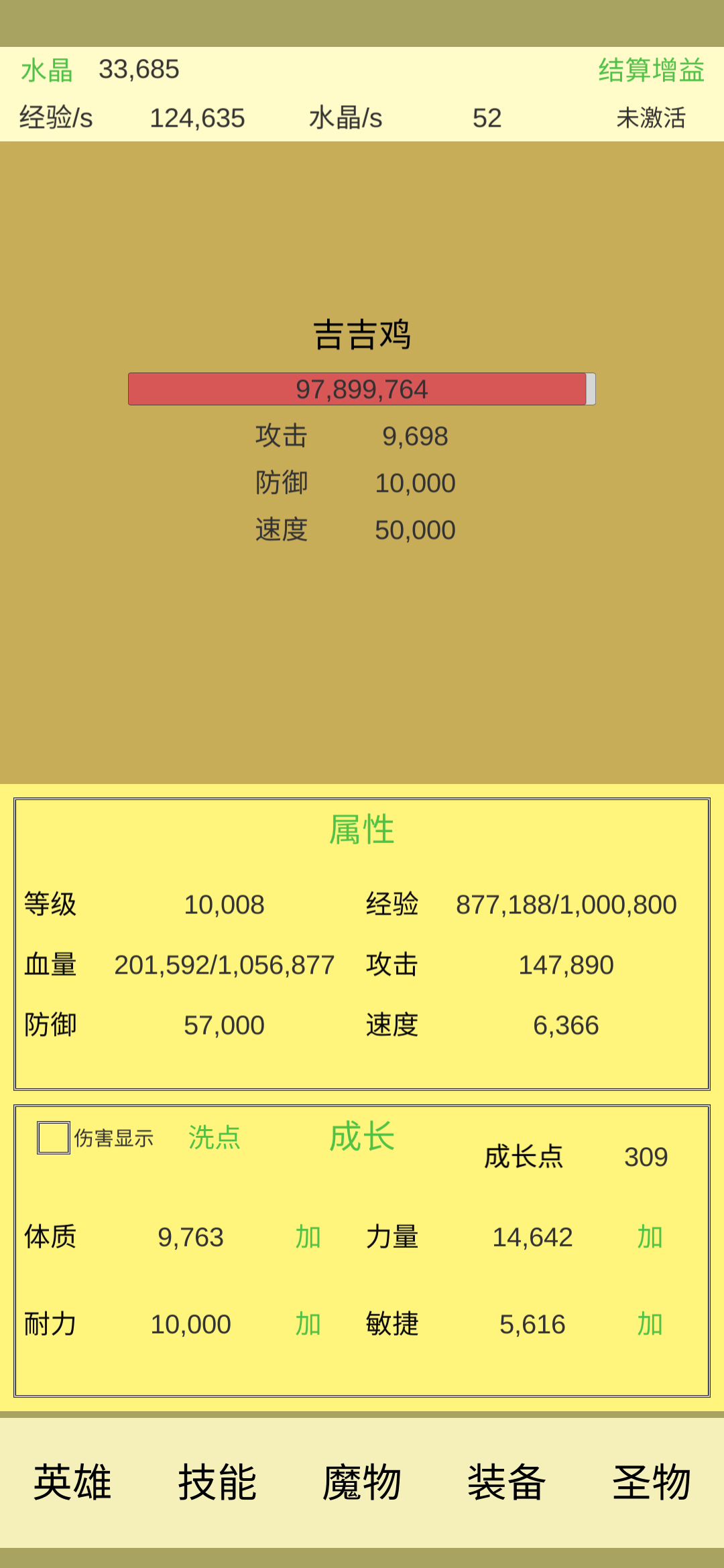 属性全攻 200e耐训 280e霸体 100w霸盾招架 1e弱点手里剑分身击破 10e火球流星雨 1e飞弹充能冰封 1e转化(转化咒术的魔法伤害为烧烧值,配合元素爆炸) 1kw或1e爆炸(主要输出手段) 10e圣护 头盔3其余2(头盔必须,鞋子可1,武器护甲尽量2) 圣物:满幽灵 满笛子 满树精 38w玄武 37w凤凰 1w深渊(避免开局暴毙) 100饕餮 圣物尽量高!圣物尽量高! 圣物尽量高!