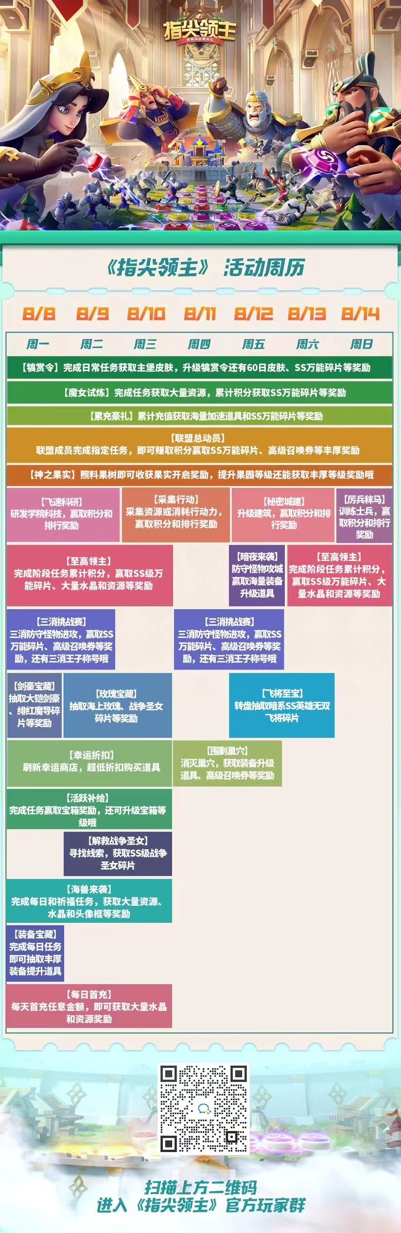 “小萝莉,我觉得时间和金钱很宝贵...” “嗯嗯,我赞同~所以你想表达什么?” “我想不费力气的白嫖。” “没问题!” 今天小萝莉就给大家带来了 最全面的白嫖福利汇总 一起来看看吧~ 一、登录福利 “上线就送XXX!”这句广告词大家是不是很熟悉呢?没错,指尖领主真正做到了哦~ 开服初期,每天上线即可获得海量水晶、高级招募券、SS级光明统帅!领主们再忙也要记得上线领取哦~ 二、开服狂欢 为期7天的开