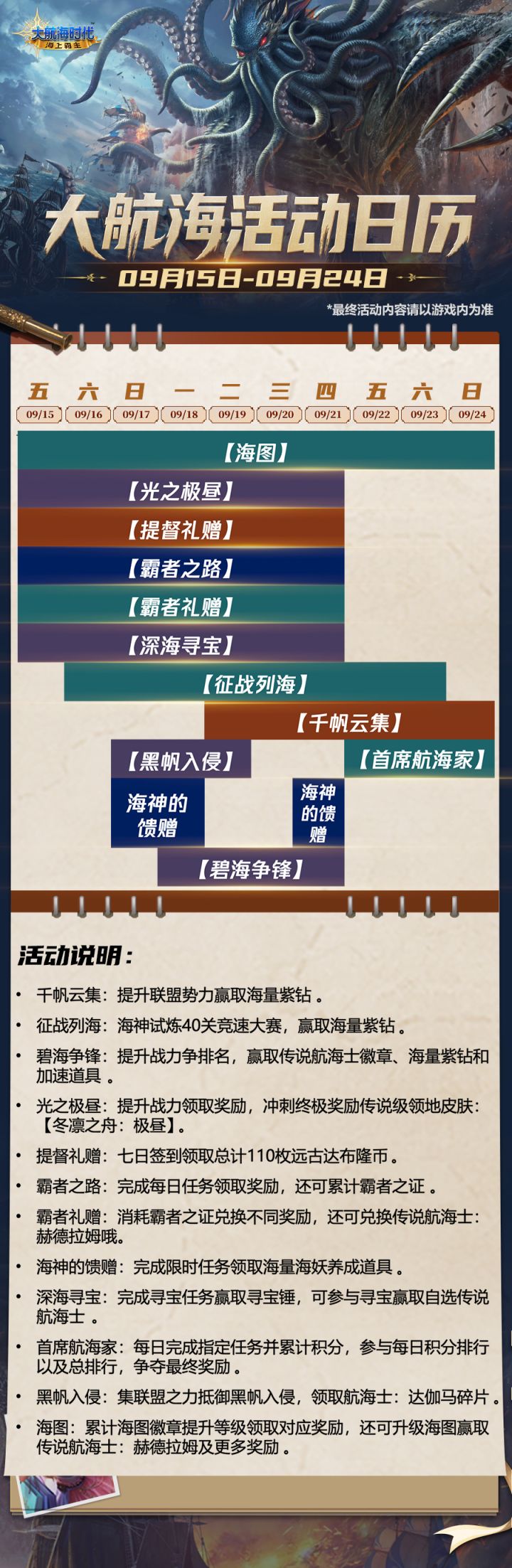 《大航海时代:海上霸主》9月15日-9月24日活动日历
