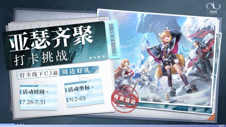 炎炎夏日,百万相聚。随着七月的尾巴不断临近,酷热的暑期已悄然降临,盒子想要与各位亚瑟大人相见的心情也越来越高升了起来。不知道各位亚瑟大人也是否也与盒子一样迫不及待的想要见面相聚了呢? 为了帮助亚瑟大人能更快的熟悉焕然一新的《乖离性百万亚瑟王:环》,盒子准备了一份特殊的惊喜等待着亚瑟大人。 在2023ChinaJoy的现场,只需要亚瑟大人们参加线上打卡活动,既可以获得限定周边福利等礼物,欢迎
