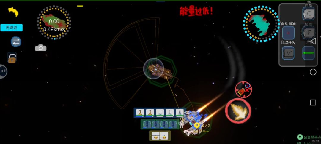 一、舰船介绍: 英灵殿:玩家驾驶舰船(B级舰船)。这艘航母,有着五个舰载机库,两个蜂群导弹发射器,以及五个黄蜂拦截激光,同时还有三个小型护盾发生器,一个中型护盾发生器(左下角),自身的装甲值和血量并不突出,所以我们需要依靠护盾和激光拦截器来进行防御。 坦克I:敌方的三艘舰船(C级舰船)。拥有四个小型武器槽,三个中型武器槽,以及一门专属的巨炮,能够以损耗船体值为代价,发射出破甲能力极高的炮弹(A