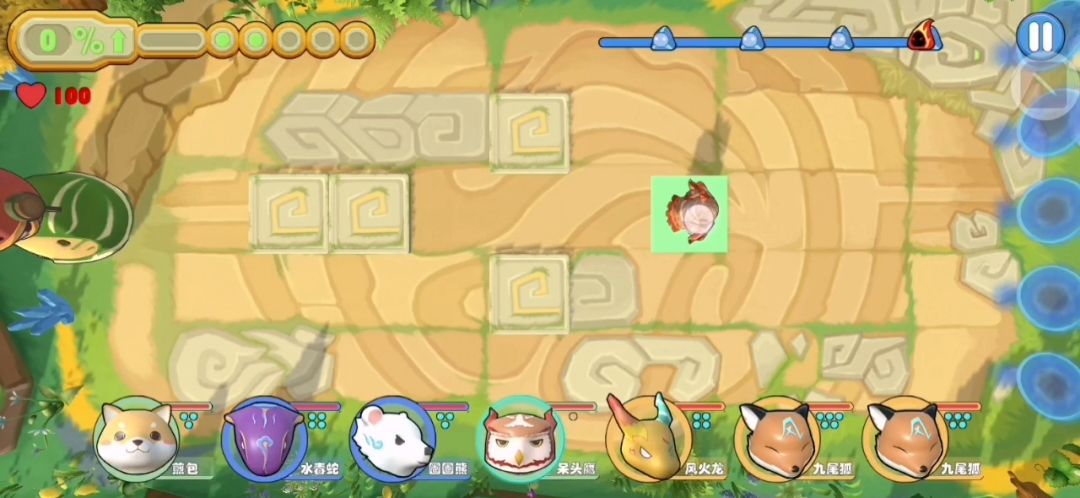 然后就是橙宠类输出了,我喜欢九尾狐和猫猫,都是三四倍属性群攻,猫带个减30%冷却,可以一直处于大招状态,九尾狐大招一般,不如一直平a。龙就有点玩不懂了,可能是懒得放技能输出一般,猴子顶多双倍输出,和几位大佬没得比,羊懒得放技能没玩过,虎增加周边攻击力,也就和兔子猴子能搭配。