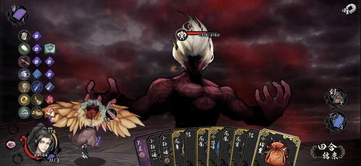天问1张 招魂1张 夜半2张 灵躯1张 魂瓶(越多越好 主要输出)现灵1张(主要过牌 能升满最好)除了 魂瓶跟现灵 其他都可以不升。我这把运气不好 就遇到了几次删牌的,现灵也没有 所以才用锦囊替代出牌顺序: 先上魂瓶,四组合,现灵,夜半,四组合,现灵,夜半以此类推。护符优先:珍珠,蛛网,玻璃串珠,毒蘑菇,竹立牌(能保你前期遇到boss无伤)博茕(前期尽量先拿多摸牌的 牌成型了 再拿博茕)尽