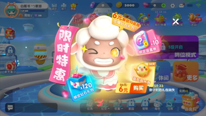 很多小伙伴一直反馈说“活动力度太小”,“奖励太少啦!”,另外也有很多玩家希望我们能够重置部分活动的购买次数,尤其是性价比超高的“新人特惠”礼包活动。为了满足大家的需要和热情,“新人特惠Max版”--【限时特惠】活动正式上线啦!“限时特惠”相比老版“新人特惠”,奖励提升!更新后充值6元礼包购买“限时特惠”后可以获得:绑定盲盒券x10、绑定钻石x120、疯狂鸡水泡(30天)真正做到了加量不加价