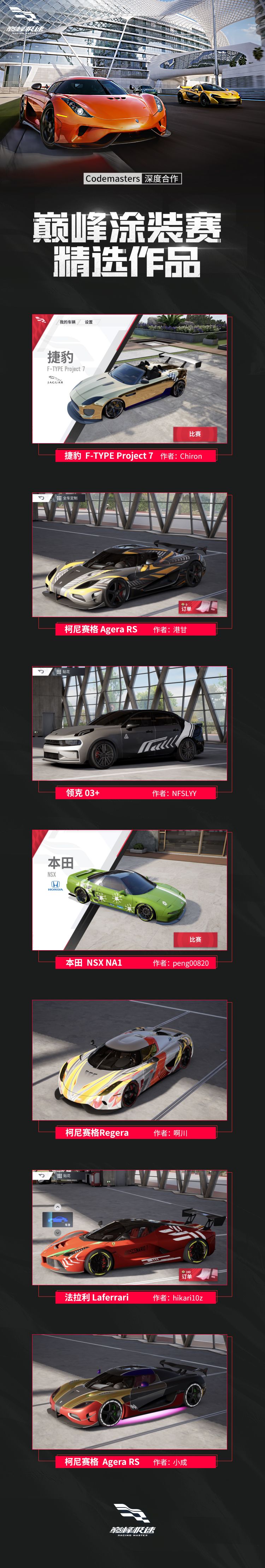 活动开启以后,我们在车展现场收到了不少车手的投稿。大家都制作的相当优秀!让开发组为了评选而发愁呢~ 最终我们精选出了以下7份作品,这些作者每人将会获得【巅峰极速】大师车手帽一顶!快来看看有没有你的作品?