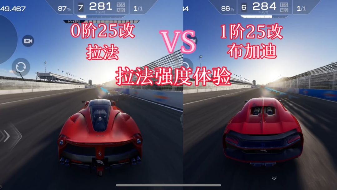 巅峰极速:0阶25改拉法VS1阶25改布加迪,拉法强度体验