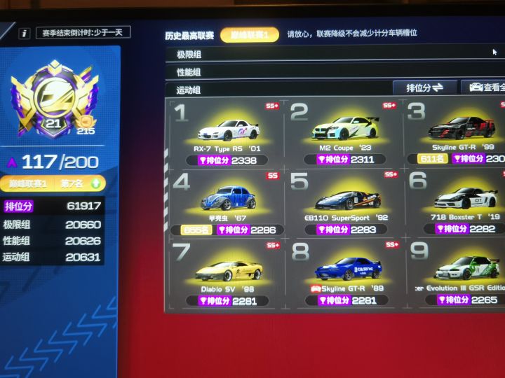 说真的单排玩着很无聊很疲惫,高分基本都是跟人机跑,大分图人机还会摆烂不像上赛季一直有尾流。最后肝图还得靠大师赛,好图加前车尾流猛猛吃分大师赛一开始没玩,这两周才开始打,目前4420,也没想上这个…主要是等来图再看别人拿什么车有尾流就给车拉排位分排位选图机制再不改改真的不想玩了,大分图永远随不到,出了人机还会给你禁掉。还有新图杯就是纯无效对局(不是大分图跑了也没用,最后算不到车辆