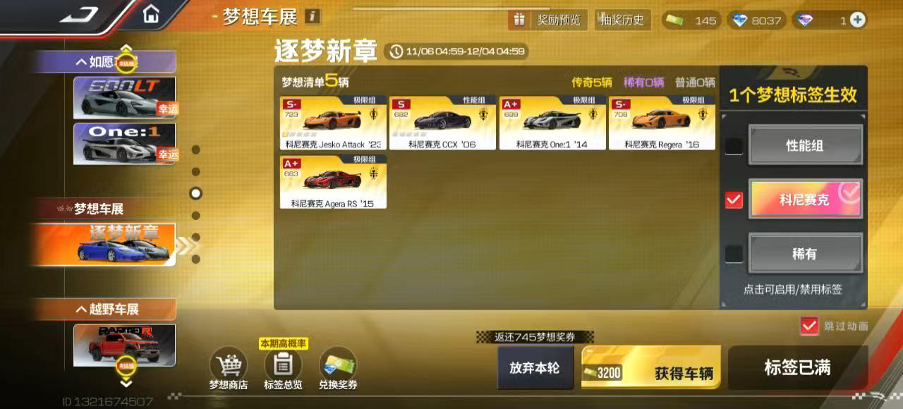 #巅峰极速 #科尼赛克 梦想这个东西嘛,还是有爆率的[表情_捂脸哭] 第一眼:我*串串香[表情_大笑] 第二眼:怎么是窝牢科尼啊[表情_豹哭] 终于抽到封面神车了,就是强度这一块儿的[表情_斜眼笑]