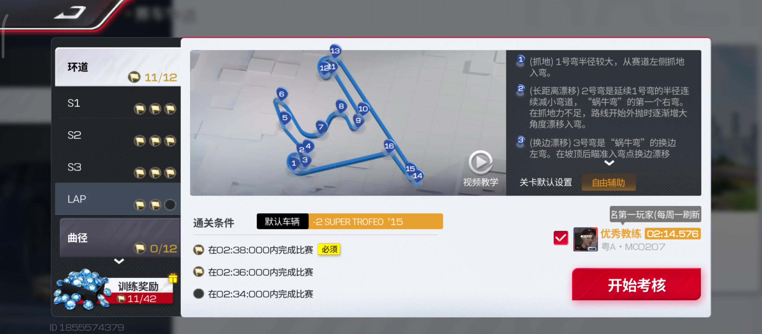 如果按照正常跑法不撞墙能完成43秒任务都属于极限操作了,但是官方都只有43秒的视频,然后我又看了一下专家视频12345名都不按套路出牌,全在一开始的U型弯道利用撞墙回弹来避免过弯减速,到最后一个直角弯时又利用撞墙来避免必须漂移过弯的地方,在40秒时勉强冲线,这都属于极限完美操作了,而且只有这种跑法才能完成41秒的任务,所以要是官方上传41秒的视频,我估计官方都不好意思,我自认技术不够没办法完成这种