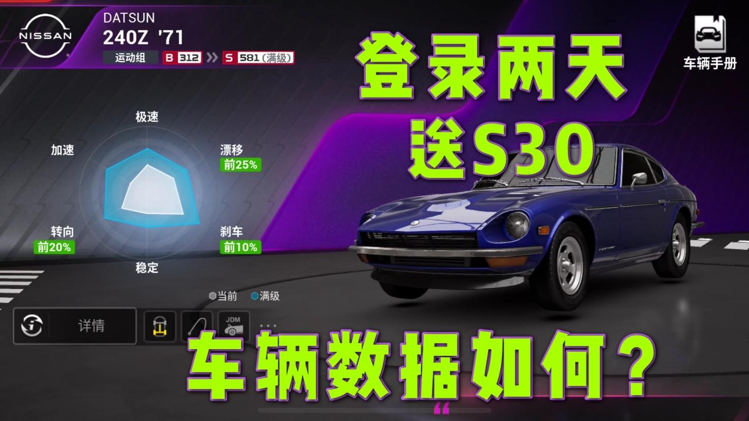 巅峰极速:登陆两天就能拿到S30,看了这辆车的数据你觉得如何