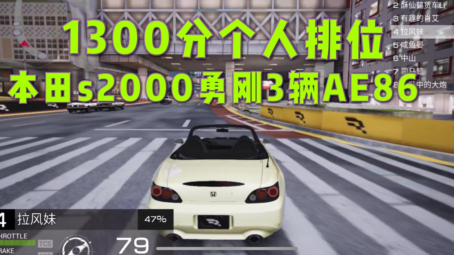 巅峰极速:1300分个人排位,本田S2000勇刚3辆丰田AE86
