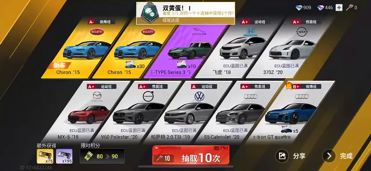 巅峰极速抽奖(布加迪卡池)