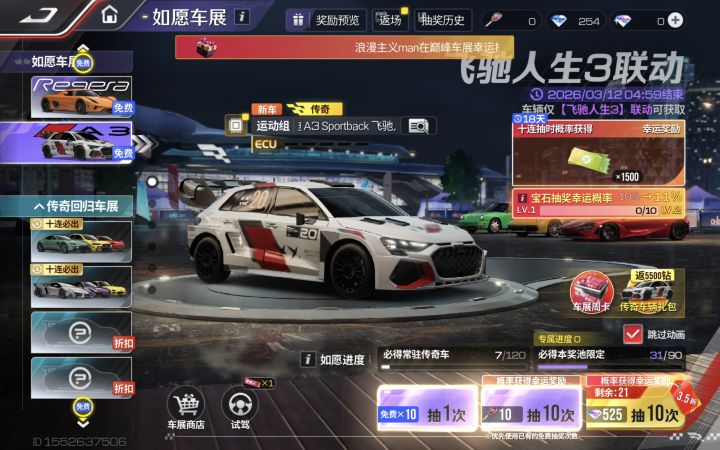 #巅峰极速 #巅峰极速梦想奖池 刚刚纯白嫖出了黑夜之声,还想要fxxk,是在如愿赌(上次这么干弄出了1阶杰哥)还是去梦想赌(上次这么干弄出了莲花evija)还是抽积分出金车?目前还剩三万💎 在线等挺急的