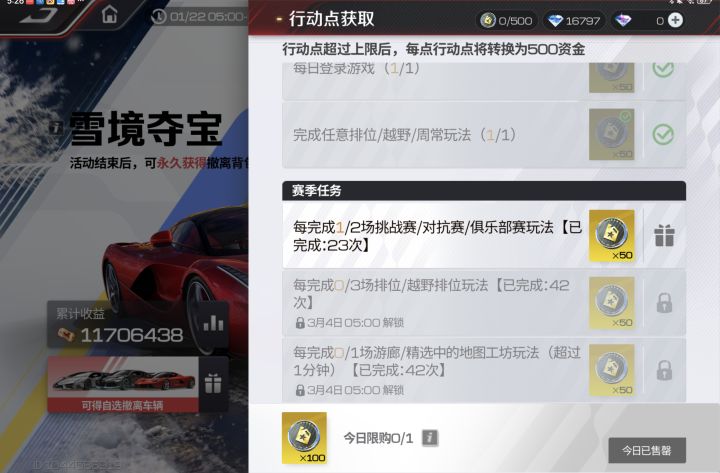 你们那个“雪境夺宝”活动,不想送别干脆别送了,没必要搞得那么恶心,纯纯恶心玩家,AI比玩家还强,没有金色词条根本赢不了boss,输了回去裸装重打?!你一赛车游戏搞什么“搜打撤”?你干脆搞成签到到3月可以自提一款,不想送珍贵的金车你限定名单好了!或许我是菜,但菜的肯定不是只有我一个,你要是说这个活动就是给氪佬,老玩家玩的,那你就设置高门槛呗,让平民 新手 菜鸟别玩,纯恶心