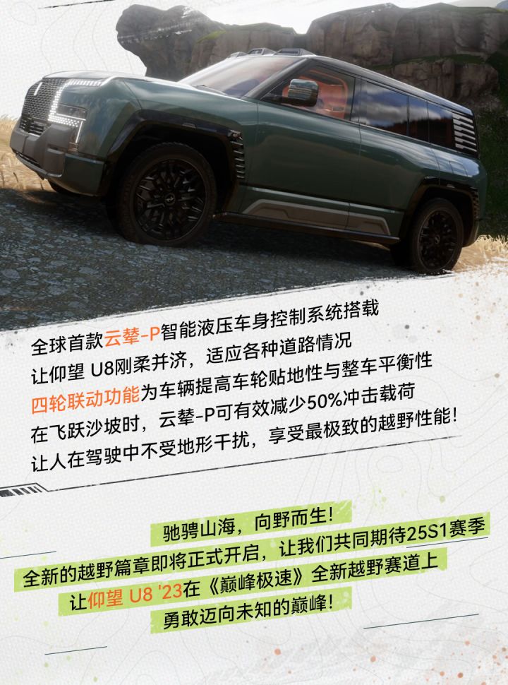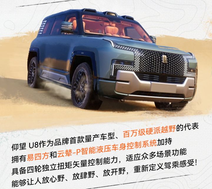 纵横沙海,硬核启程!【越野组】全新传奇车辆 仰望 U8 '23即将上线巅峰车展!全新的越野篇章即将正式开启,让仰望 U8 '23在《巅峰极速》越野赛道【波斯湾】上,勇敢迈向未知的巅峰!