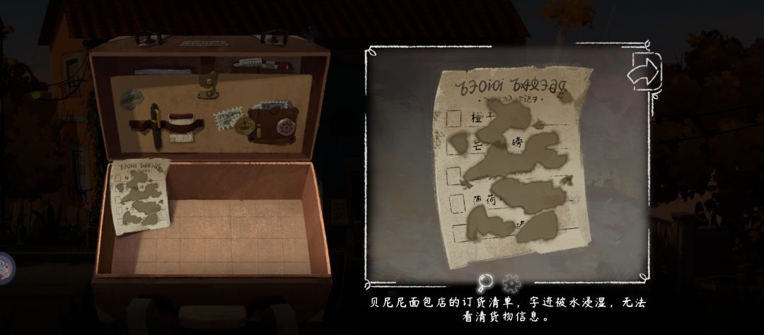1️⃣下火车后和售票员对话,得知基本信息;向右走找水果店老板 2️⃣查看信箱,得知水果店老板名字叫米歇尔,与米歇尔对话后得到被污染的清单 3️⃣向左走,查看墙上海报,往下拉得到面包店电话(这个是随机的) 4️⃣走到电话停拨打面包店电话(不会拨电话的可以看我视频里操作03:25),修复清单 5️⃣把清单给米歇尔,上车 6️⃣米歇尔询问时间,点击车再点击抽屉,拿到钟表,将时间调为04:50 7️⃣收音
