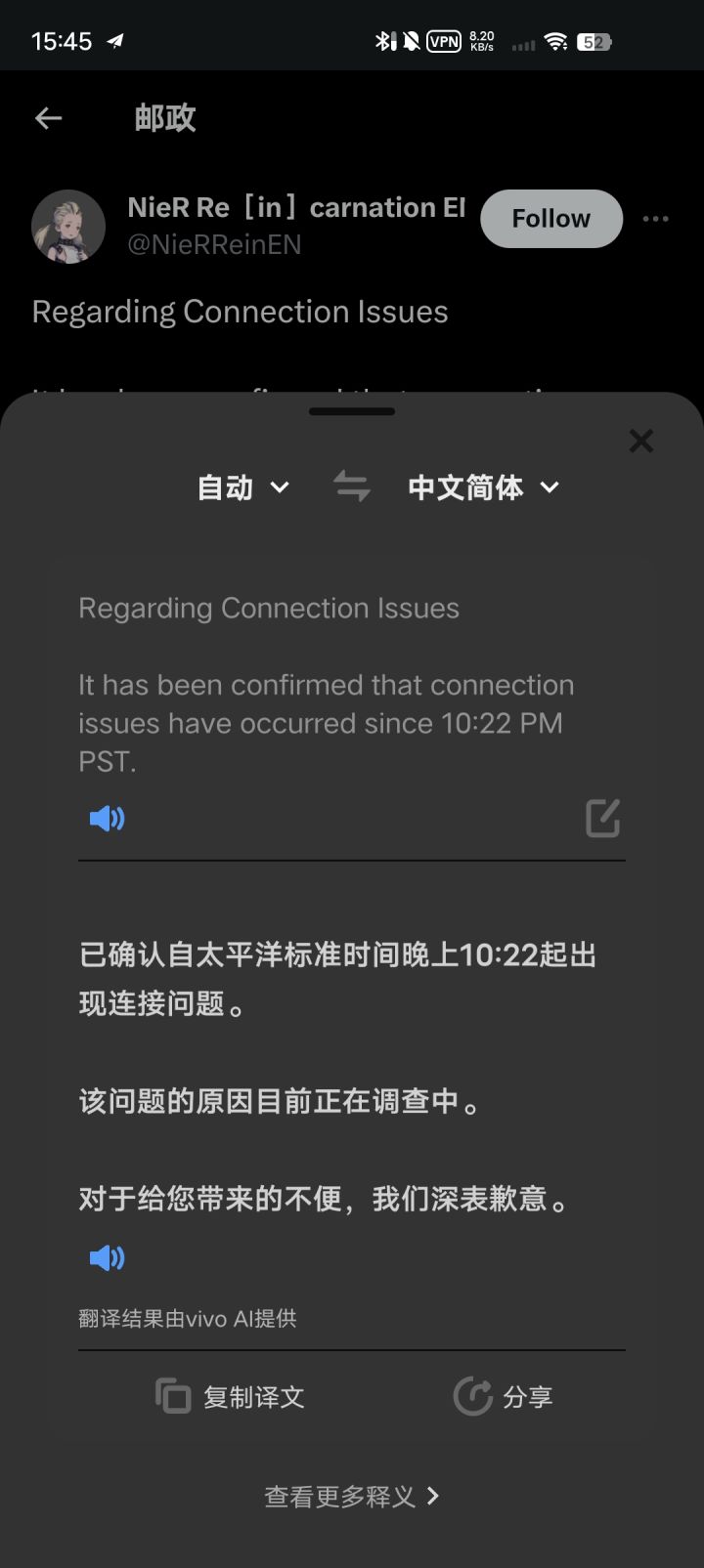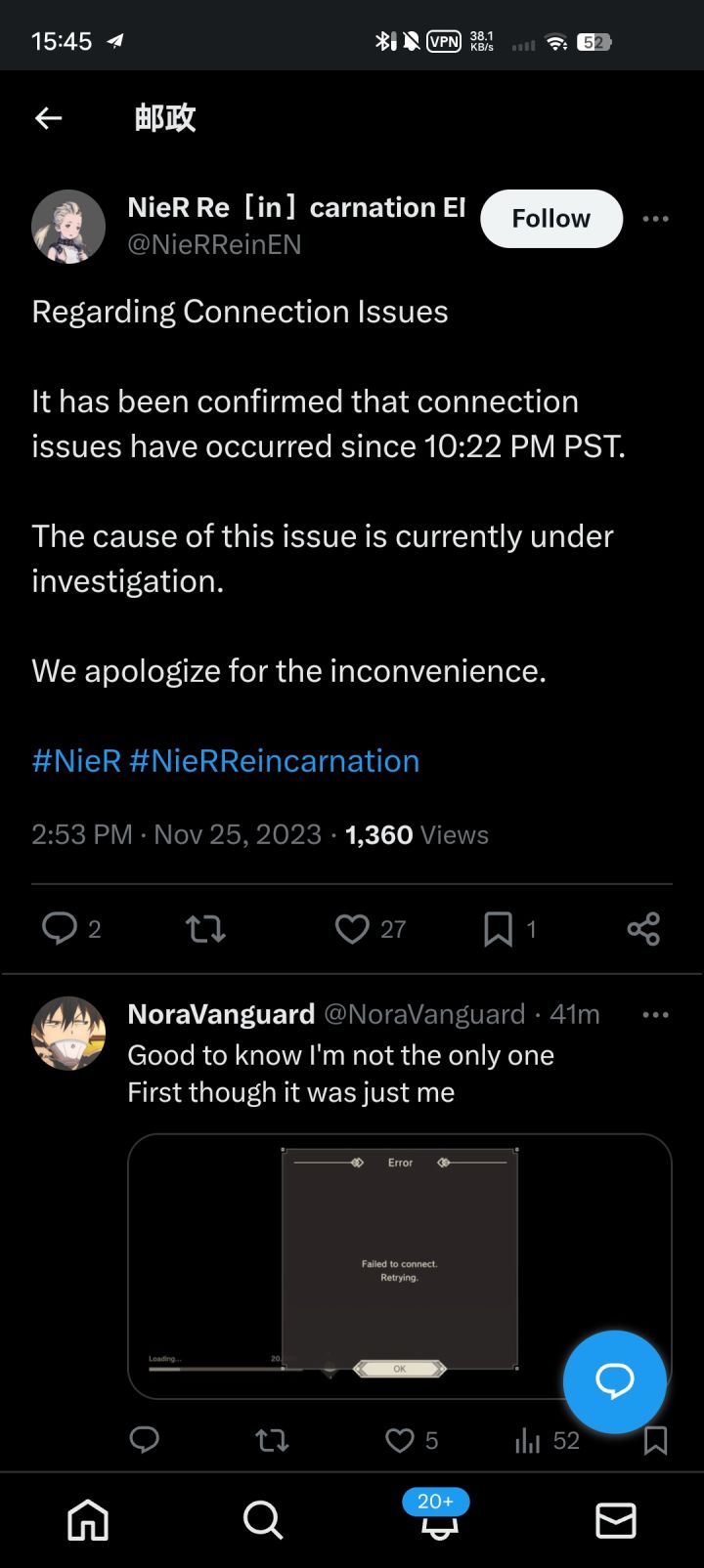 连接出问题了,不是加速器的问题。等待官方修复吧