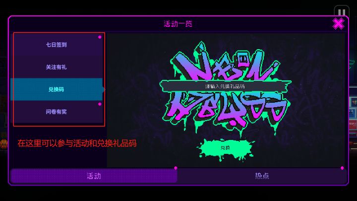 两张图,教你如何兑换礼品码和参加活动