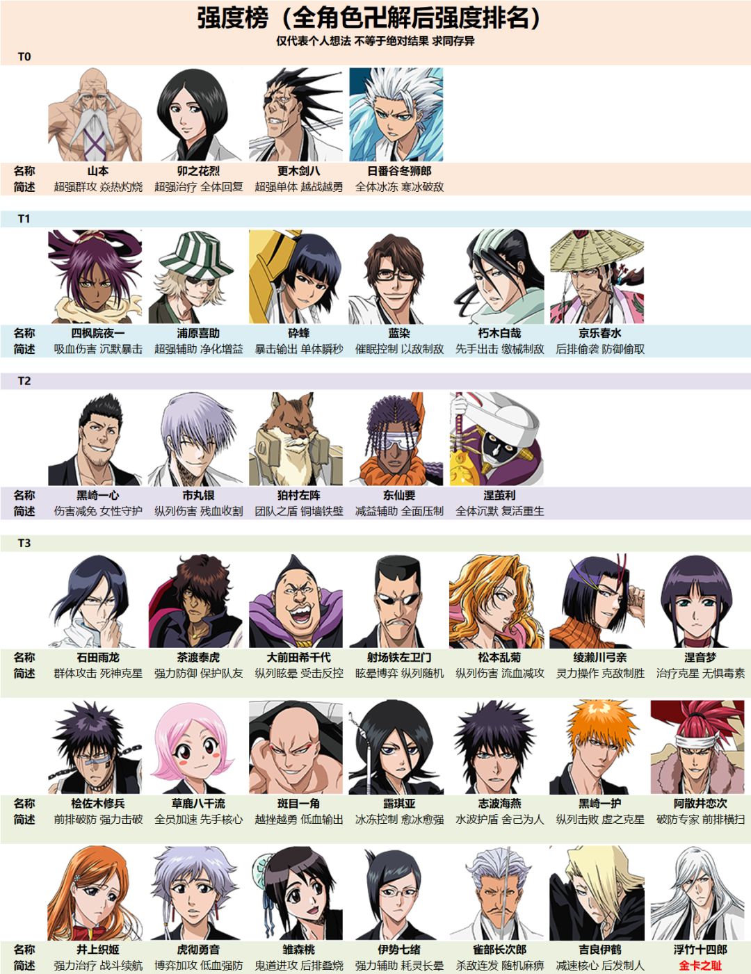 多次测试总结下来的角色强度表,仅供参考~