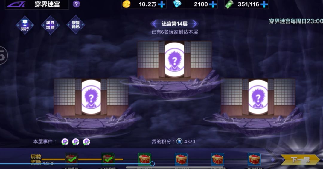 在穿界迷宫活动副本中,每一层迷宫都会遇到不同的事件出现,这些事件有的会影响我们在活动副本中小队属性,有的则是会遇到熟悉的伙伴赠与我们丰厚的奖励。如果在迷宫中遇到虚的拦截,我们就需要派出小队成员来击败拦截人员,击败拦截人员后我们出击人员也会筋疲力尽等待新的事件来回复体力。 多种多样的迷宫特殊事件以及丰厚的层数奖励,穿界迷宫的榜单等待你到来。