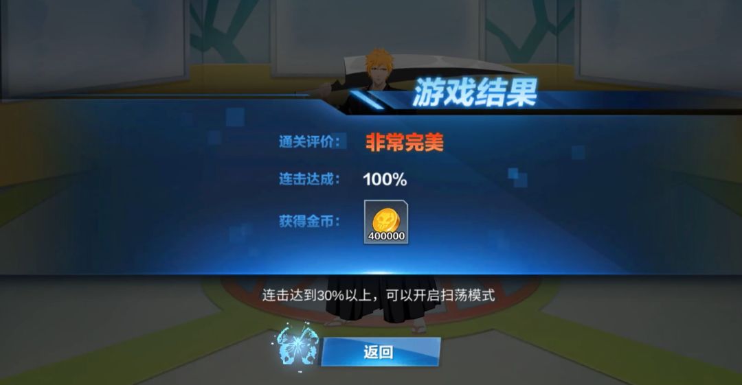 金币副本中我们可以对多名角色进行卍解训练。在训练过程中我们需要全程注意屏幕中从左向右滚动的黄蓝颜色符号,当符号滚动至判定框中时,我们需要点击所有两侧对应颜色的键位,如此时符号正好进入判定框中则判定为完美,若仅部分在判定框中则仅为一般漂亮判定。金币副本完成后,右侧能量槽已满金币副本即为挑战成功。 整体副本挑战连击率越高获得的金币越多,连击100%可以获得当前难度的全部金币。当然对于部分难度较高的金币副本,我们只要保证达成30%连击,后续即可通过扫荡来获得全部金币奖励了。 灵活的反应,准确的判断,金币副本的奖励等待各位的领取。