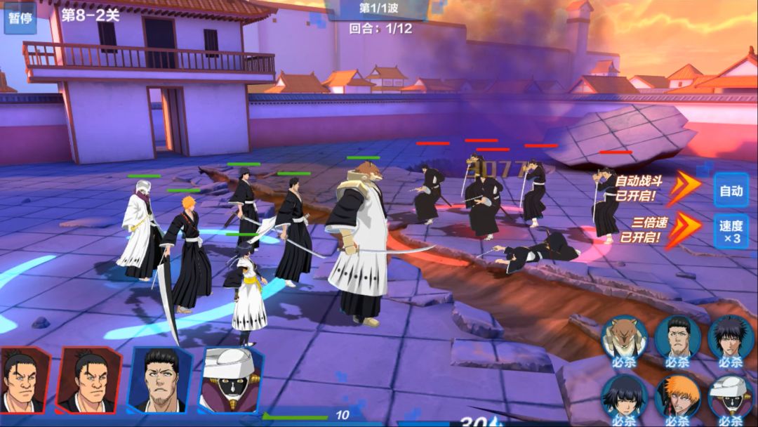 注重搭配的关卡增加很多可玩性,前排放“肉盾”,后排放辅助和输出,狛村左阵、一心、海燕组成的前排坚不可摧;后排双输出+一辅助确保足够的攻击力。碎蜂的二击绝技除对单体输出非常高以外,还随机攻击身边的一个目标,且暴击率很高。涅茧利队长的强力实验药剂技能是个很不错的全体AOE技能,全体伤害外加降低治疗效果Debuff。 打完关卡每一个关卡,居然可以自动下一关的挑战,这太暖心了。