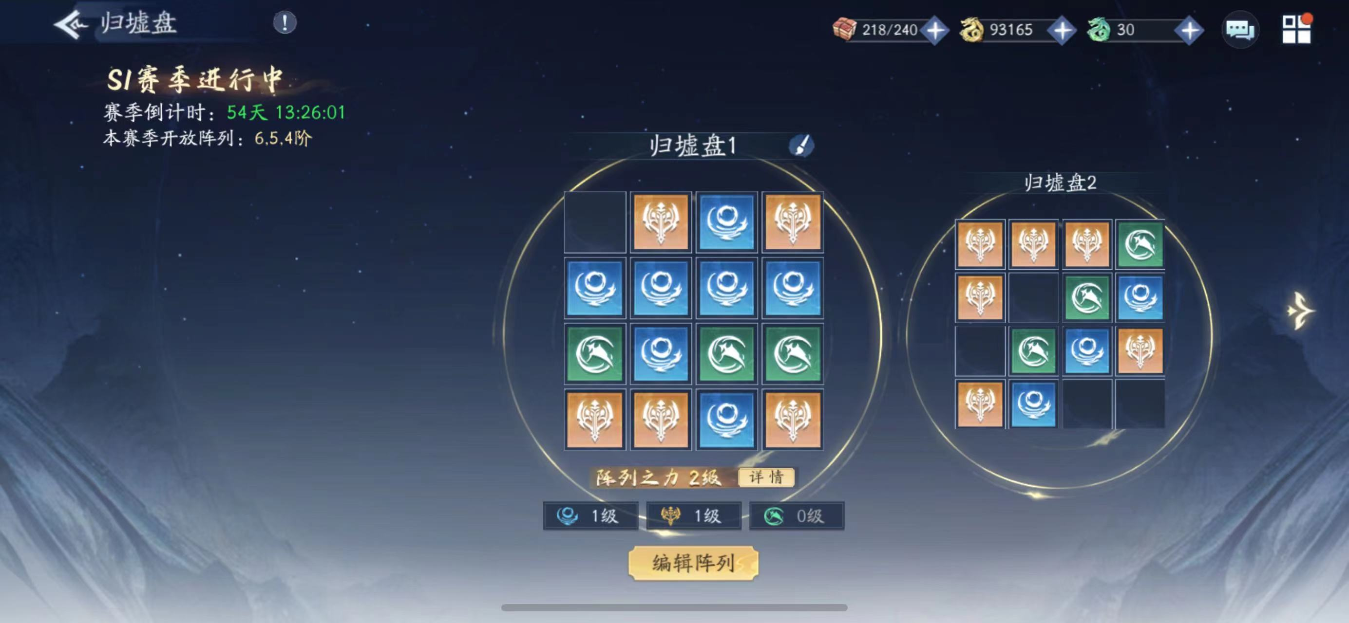 归墟盘玩法比较简单,即用神魔之井奖励的阵列拼出特定组合,以获取属性和技能加成。 基础玩法不赘述,这里说一些小技巧,助你阵列使用更高效,早日拼出想要的形状。 一、阵列合成 首先,5阶及以上几乎没用,可以无脑合成,如果有5阶纯色(没见过),也可以考虑暂留。 其次,4阶为拼图基础模块,主要考虑:50层首通奖励为50个5阶,即12.5个4阶。每周奖励9个4阶。当前为第二周,总收益为21.5个4阶。 归墟盘