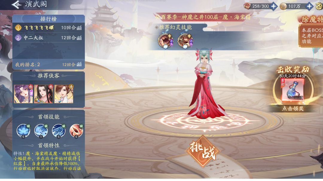 配置双火宠物,速度大家应该都满足,10星火柳梦璃1新魂器,特点:有点脆皮,怒攻上限1000,这不是缺点,可以扭转乾坤 这次会解构得比较细,帮助大家高胜率通关 一般胜率计算: 概率1.宠物生效70%*70%*70%=34.3% 概率2. 4层魅曲(4层立即减速,不会被缠绕)(开局1层,怒攻2层,第一回合被普攻打触发1技能魂梦效果50%概率1层) 实际胜率34.3%*50%=17.15% 所以大佬