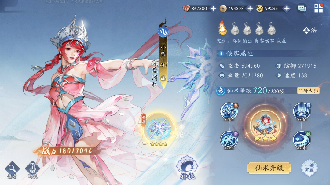 各位宝子们大家好 我是Dreaming/峰峰疯了 上一期内容为大家简单讲解了——新赛季神魔1号幻灵技能解说与站位+全新归墟盘 本期我们来为大家解说——全新水(珍)武侠客——云天河 新侠客,我们先睹为快 侠客属性:水 侠客职业:武 侠客定位:群体输出+冰冻+霜华+承伤降低 侠客速度:110(这速度勉强还算可以,没有太慢) 人物简介与原作仙剑奇侠传四中,为了解父母的过去,与韩菱纱、柳梦璃一同上琼华时期