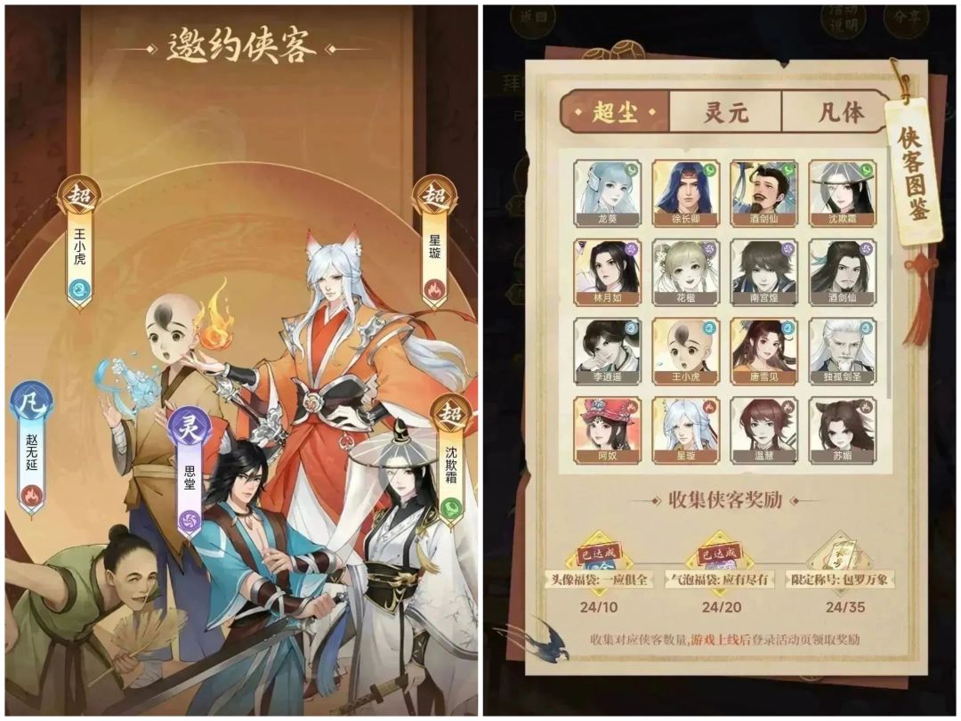 大家好我是暴躁的柚子,本人从去年8月删测开始接触这个游戏,然后入坑光子服,上线前先水一贴,有问题可以问。 官网预约,也就是上方链接,里面有个邀约侠客的活动,简单来说就是完成任务领拜帖,可以抽奖解锁侠客图鉴。 不花钱可以带2只灵元侠客进游戏,花1元可以多带1只超尘侠客和1只灵元侠客。 注意这个活动的结束时间是6月8日23:59,现在没参与的抓紧了! 所以这个1元该不该花? (不想看废话想看结论的可以