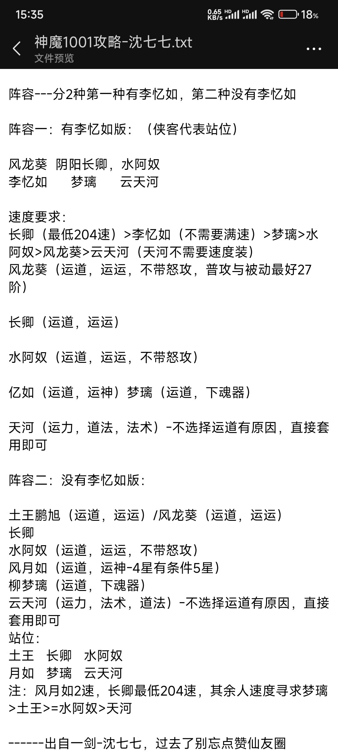 一、练度展示 二、宠物展示 三、通关视频 四、答疑解惑 1、为什么部分侠客要下神祝 答:为了让风韩菱纱吃到柳梦璃和水阿奴平a加成。另外注意要保持韩菱纱攻击最高去吃猫的加成不然过不去 2、boss机制是什么 答:分韩菱纱第一回合怒攻后追击8下以上清楚boss的[巡查]被动才可以造成伤害(仅限第一回合) 3、风韩菱纱的速度需要拉到多少 答:因为需要怒攻后追击,每次追击最多3次(队友行动后