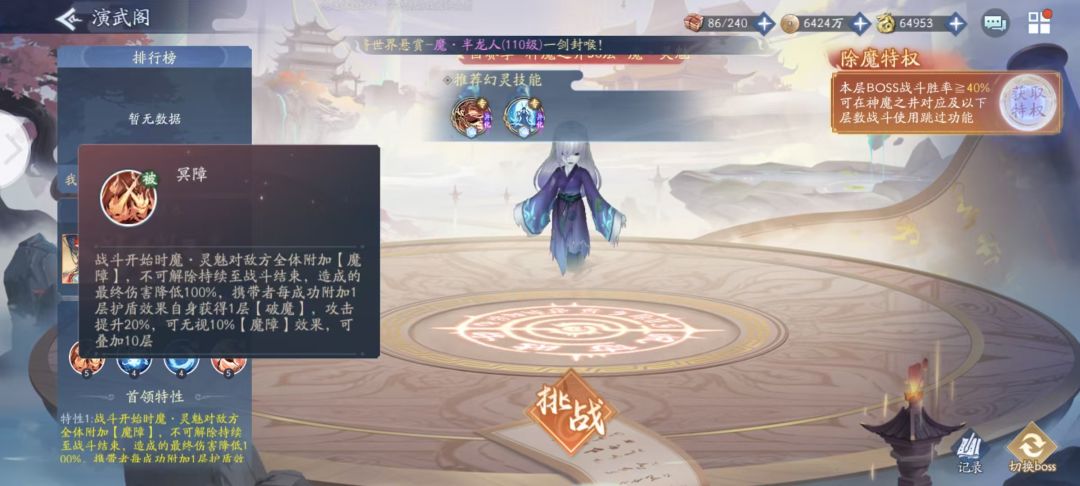 低配,先遣服比正式服早几个赛季,神魔属性会高点,5000万出头能拿特权(其他卡不带装备可以压到3000万不过没必要) 满配低练度(1400万梦璃46万攻)能4回合结束 40层能3回合结束,不需要幻灵,理论上50如果能3回合结束也不需要幻灵 目前神魔很公式,幻灵+长卿梦璃阿奴+当期珍+补位辅助 说下梦璃的几个特点 1.魅曲是敌方行动前造成伤害,可以触发雷月如的麻痹 2.魅曲固定概率,不吃气气,神魔神