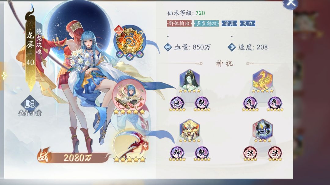 题外话:排序考虑不同阵容,考虑pve和pvp不同玩法,由于现在进阶40需要满星,所以默认为满星,原则依然是珍系阴阳一起拉,拉新不拉旧,主要考虑白嫖稀有神祝+神魔之井中的神兽液,当然也给新区的朋友一些老卡的建议。 一、龙葵+水温慧 这已经属于老卡序列了,无奖励,能力有限不建议拉,由于圆桌算法落地,越今朝面板闪避达不到90%要弱一大截,也失去了越今朝+水温慧的强势组合,勉强在二三队有一席之位。 龙葵吃