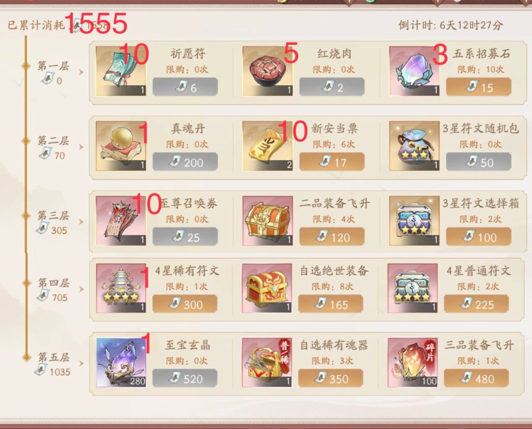 红票规划:有升星活动时200红票进,拿2魂器跟一蓝火阳阳,后续天榜慢慢换,没升星活动时265票进300出,拿两魂器+ 8-12个本体,看脸把,目前红票规划就这两种 绿票规划:新珍开放后,前一个珍就可以白嫖慢慢换了,稀有是16个本体升5蓝火,自己规划好,目前新安当箱子跟绿票自选跟每个月寻仙18万寻仙币换一个稀有箱子跟每个月五系招募可以指定换一个是足够拉满珍的,例如菱纱开放后火紫进稀有卡池就可以白嫖 黄