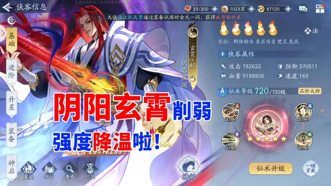 挥剑问情:阴阳玄霄迎来削弱,强度降温
