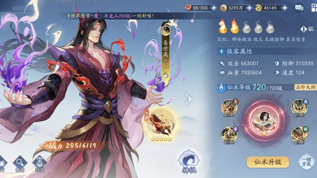 大家好这里是依尘聊游戏,今天我们就来看一看新神魔1号位天妖皇501的打法,小伙伴有其他想法也可以在评论区留言(需要调节神魔/世界/PK的小伙伴也可以私信我)。 01通关思路 由于天妖皇无法被暴击,水云天河要打出高伤害就要叠加攻击力和增伤属性,攻击力的优先级最高,增伤属性其次,天妖皇需要被冰冻才能对其造成伤害,要更快破防,就要高负面命中效果。 02通关阵营 宠物:鱼+狗通关阵营:阴阳徐长卿+水