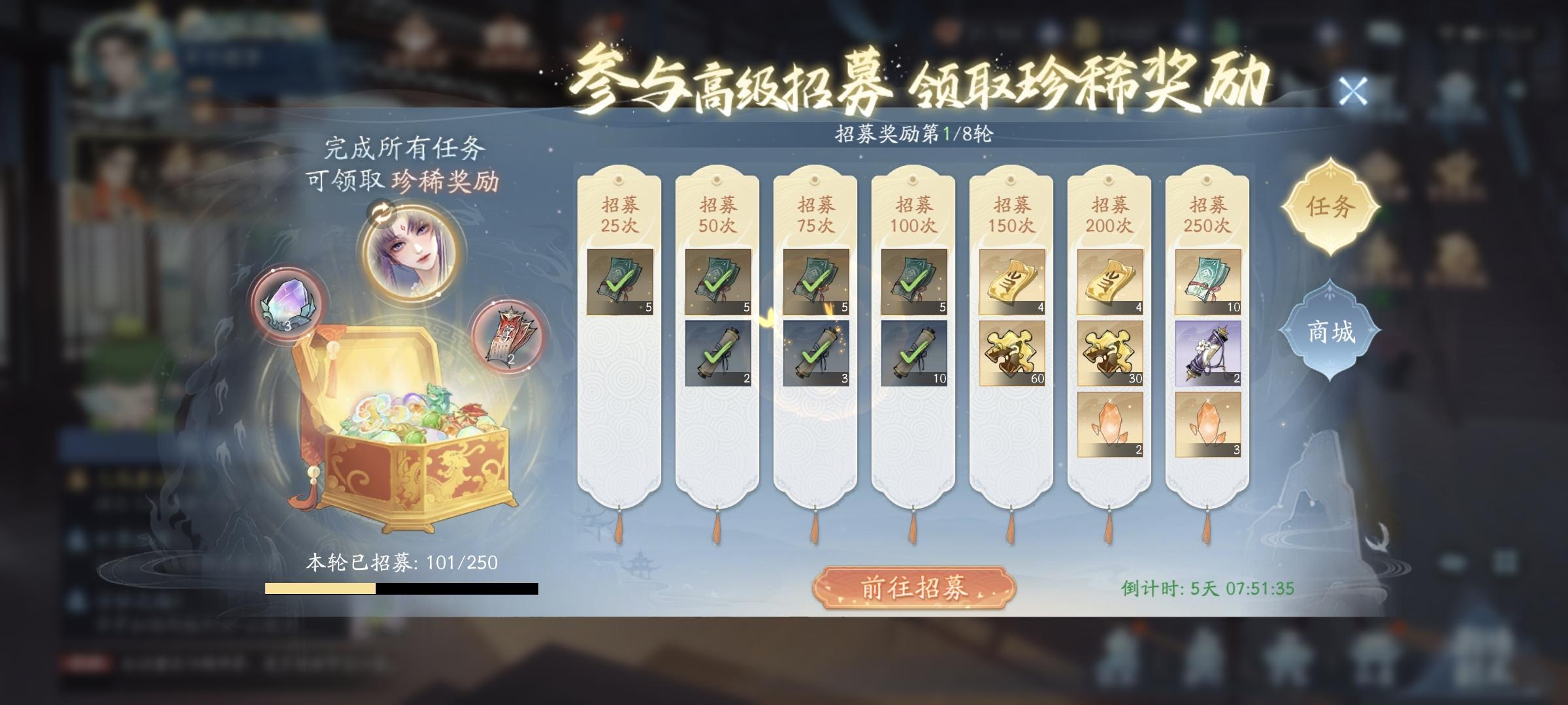 目前第一条,第三条,第5条,第6条还没完成,还有补充一条过年的全侠客签到!