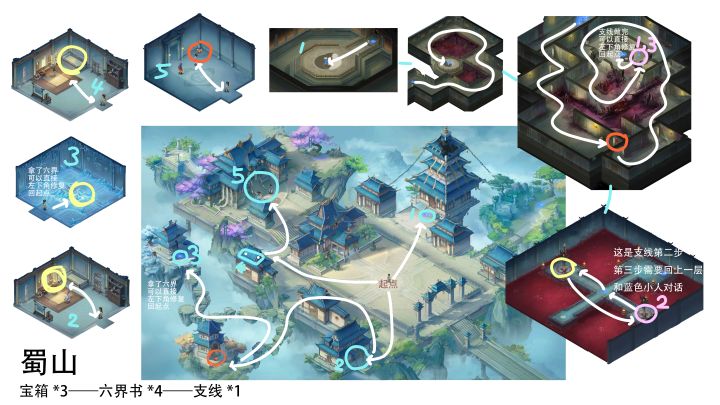 蜀山 冰风谷 共:宝箱*5 六界书*4 支线*1这一章合理利用左下角修复 来少走一点路~