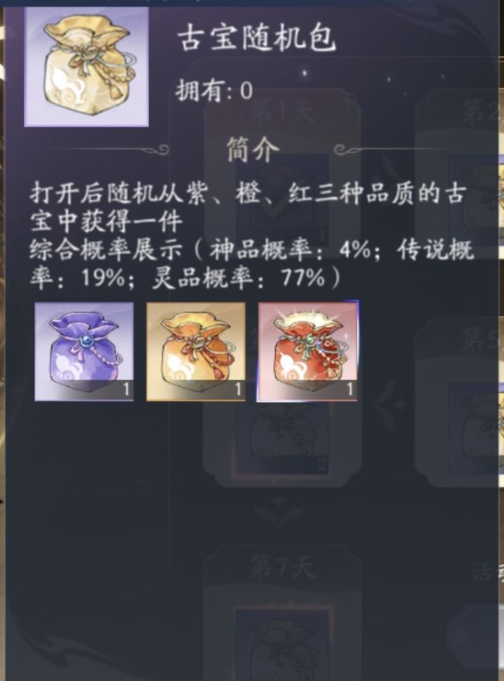 三张图分别是:别人的古宝、青瓷的概率、自己的古宝。氪金玩家6000块三个自选,等于欧皇开一下袋子