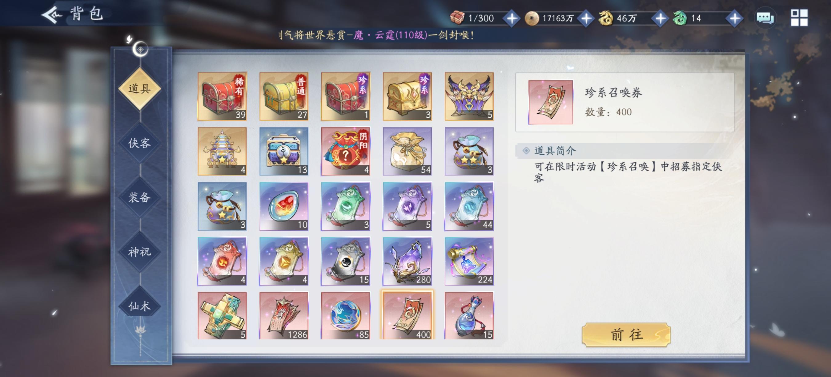引言: 应大佬要求,出一个低配版的100-1通关攻略。一、练度展示二、通关数据三、宠物展示四、答疑解惑 1、神祝搭配 a、徐长卿:精精、术术 b、柳梦璃:道运 c、火海棠:势势、法术、运力、道运 2、boss速度:50层102;60层103;70层105;80层132;90层159;100层186 感谢光子服大佬【风起剑舞】提供的账号