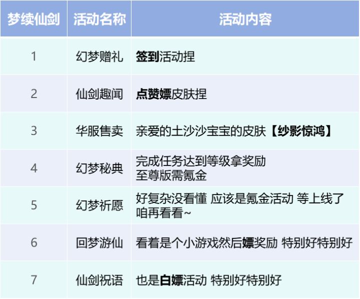 序:早上好啊大家ovo,窝是黑豆碎碎冰!好久不见呀!!!!!!!!!加急加急加急!!! 今天主要分为三个部分~partA: 重点一览partB: 通篇解读partC: 原公告 gogogo~partA:重点一览仙剑三剧情即将登陆~、周年庆系列活动·梦续仙剑、有点赞嫖皮肤~、土沙沙皮肤登陆~、氪金活动幻梦祈愿~周年庆系列活动·2周年庆典、三个月卡(珍、红、花)、心愿招募(1500+