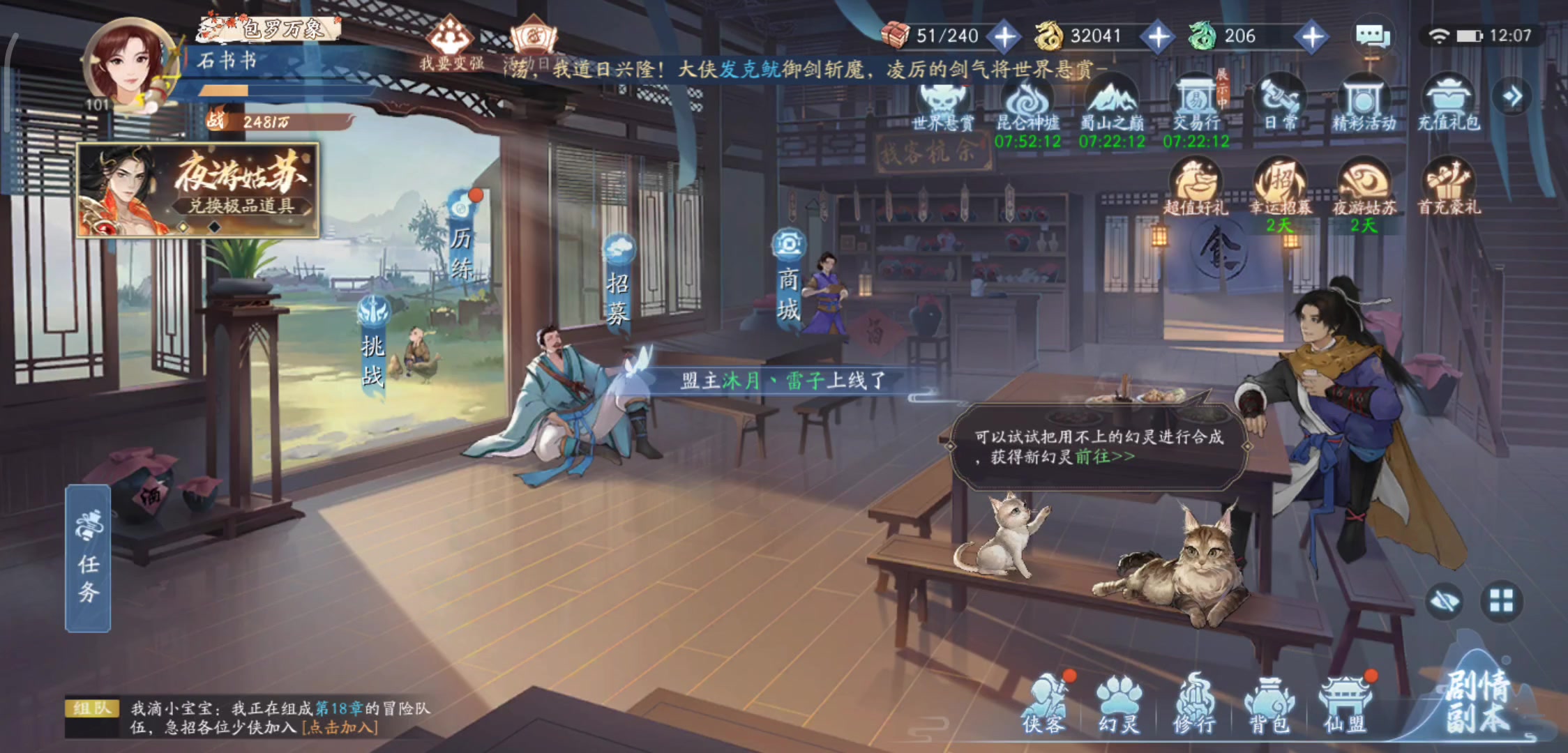 这就是我的正常状态,有时候我就纳闷了,黑就黑吧,有啥好吐槽的,说的好像谁不是一样的,我从来就不奢求转白,反正这游戏就是这么玩,你看我不也是玩的挺开心的? 建议:如果不是急着12星或者15星开天尊,抓灵宠,没必要一开始就养满,一个10星开27阶和拿魂器,一个8星给二队,实力增幅最大化。