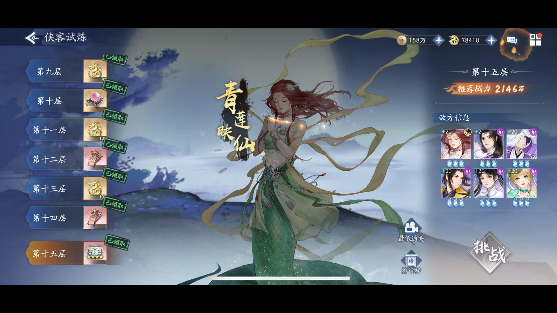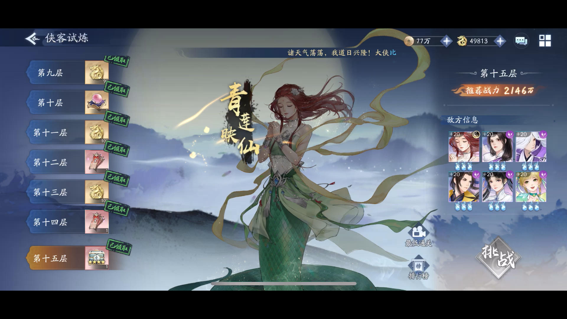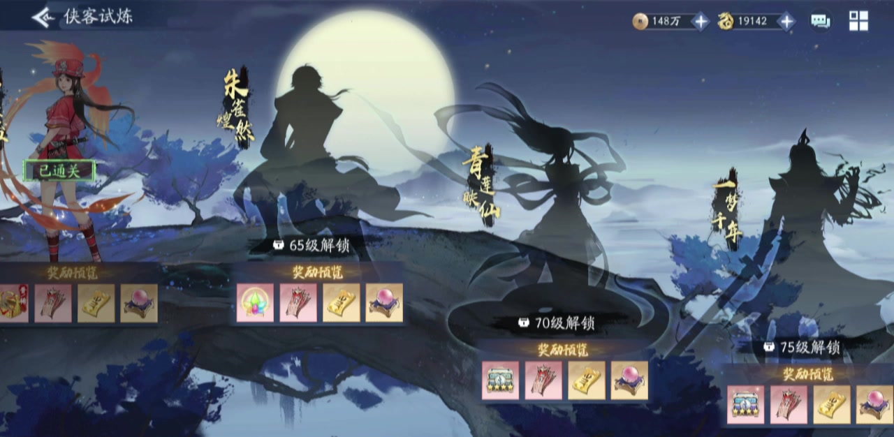 75侠客最后一层,试了n把,最后上了22阶雷月如后3把过[表情_思考]